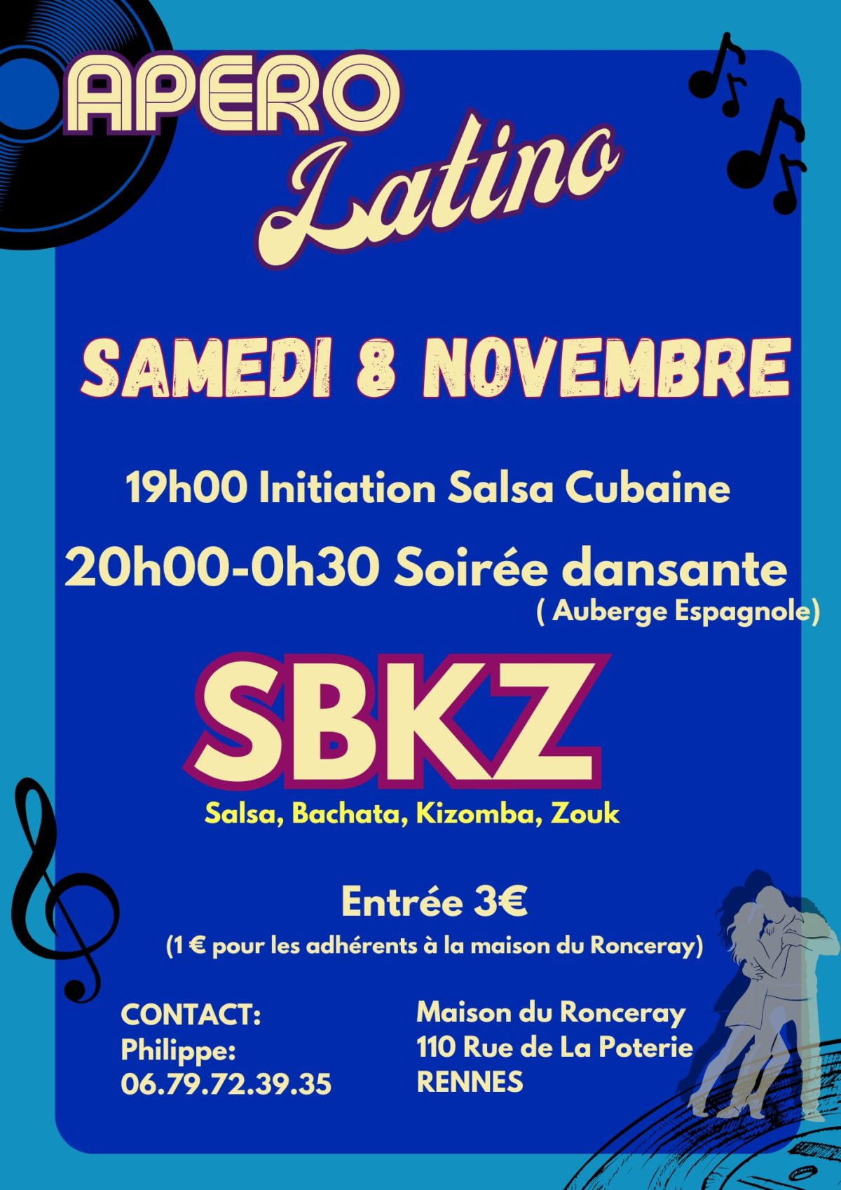 21h à 0h30 : Pot amical + soirée dansante (bachata, merengue, salsa, rock, swing, kizomba, zouk, forró, kompa, etc.)